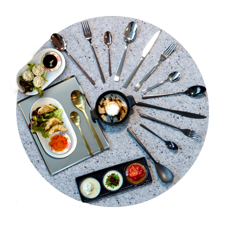 La nostra posateria professionale in acciaio inox comprende coltelli, forchette, cucchiai e set completi, selezionati tra i migliori marchi.